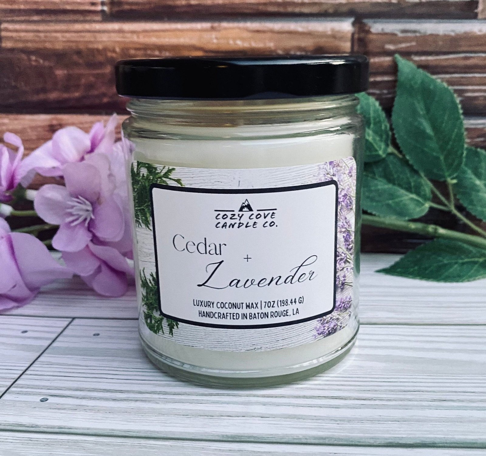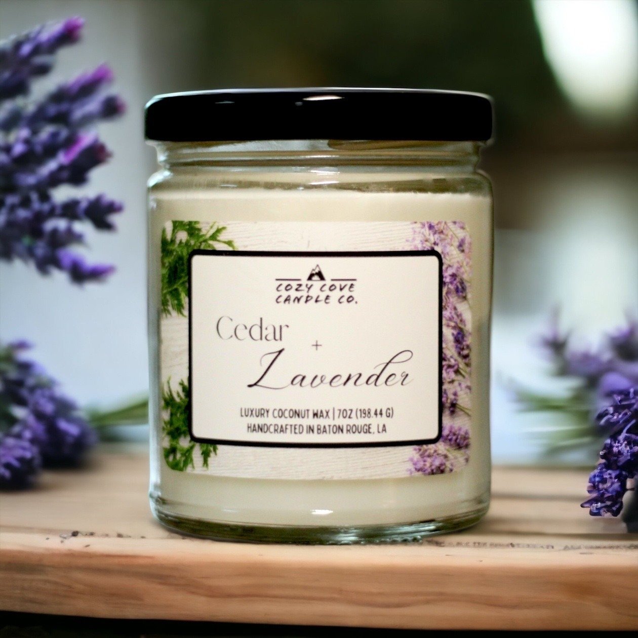 Cedar Lavender Scented Candle Essential Oils, Glass Jar Candle 7 oz, Gifts for Her, Non-Toxic Coconut Wax, Hand Made, Best Smelling Candle